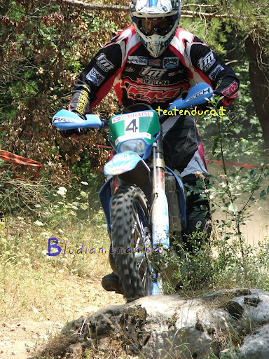 Ci racconta Edoardo: -“ …. verso la fine del giro, si percorreva un tratto in discesa nel bosco molto ripido, tutto canali e radici, talmente alti che in alcuni punto si scendeva con la moto dentro, e le gambe fuori ad altezza di serbatoio. Per minuti. All’ultimo giro ho avuto i crampi…….”-